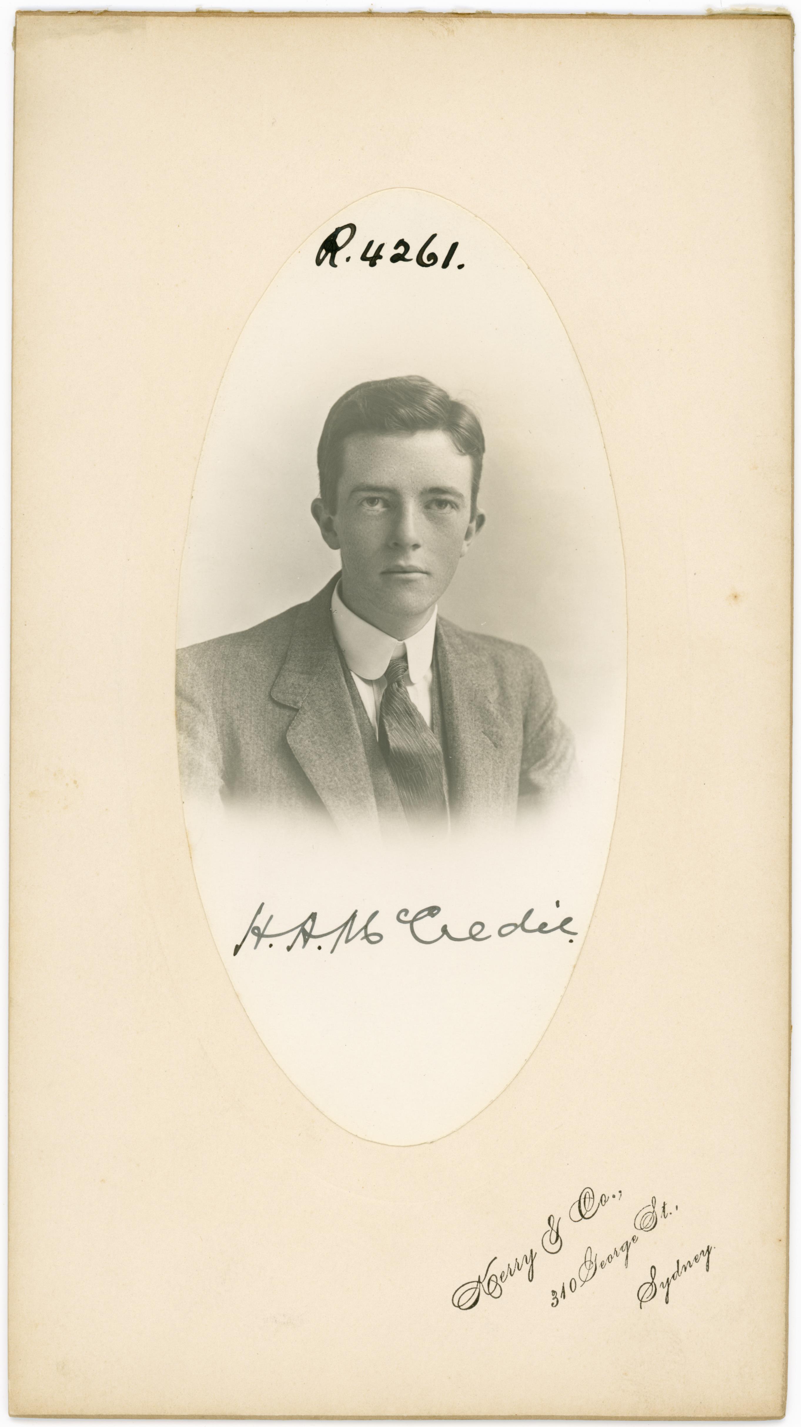 M.B., Ch.M. : Gunner, n th Battery, A.F.A., A.I.F., France. Enlisting 8th April, 1916, and sailing 30th September, served with battery at Bullecourt, Ypres, Dernancourt and elsewhere until demobilisation, although gassed at Ypres 3rd November, 1917. Early education at Sydney Grammar School.