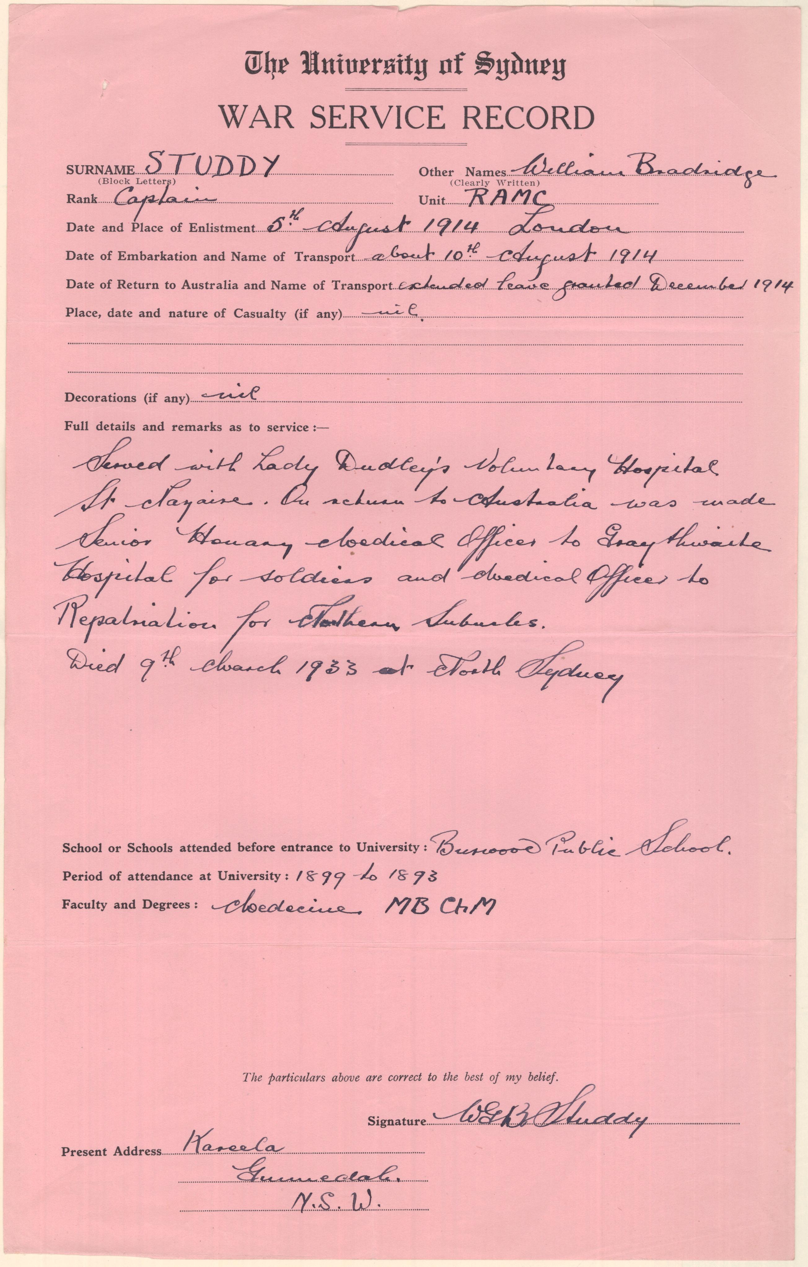 Studdy, William Bradridge