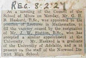 His appointment to the University of Adelaide [ pdf ]