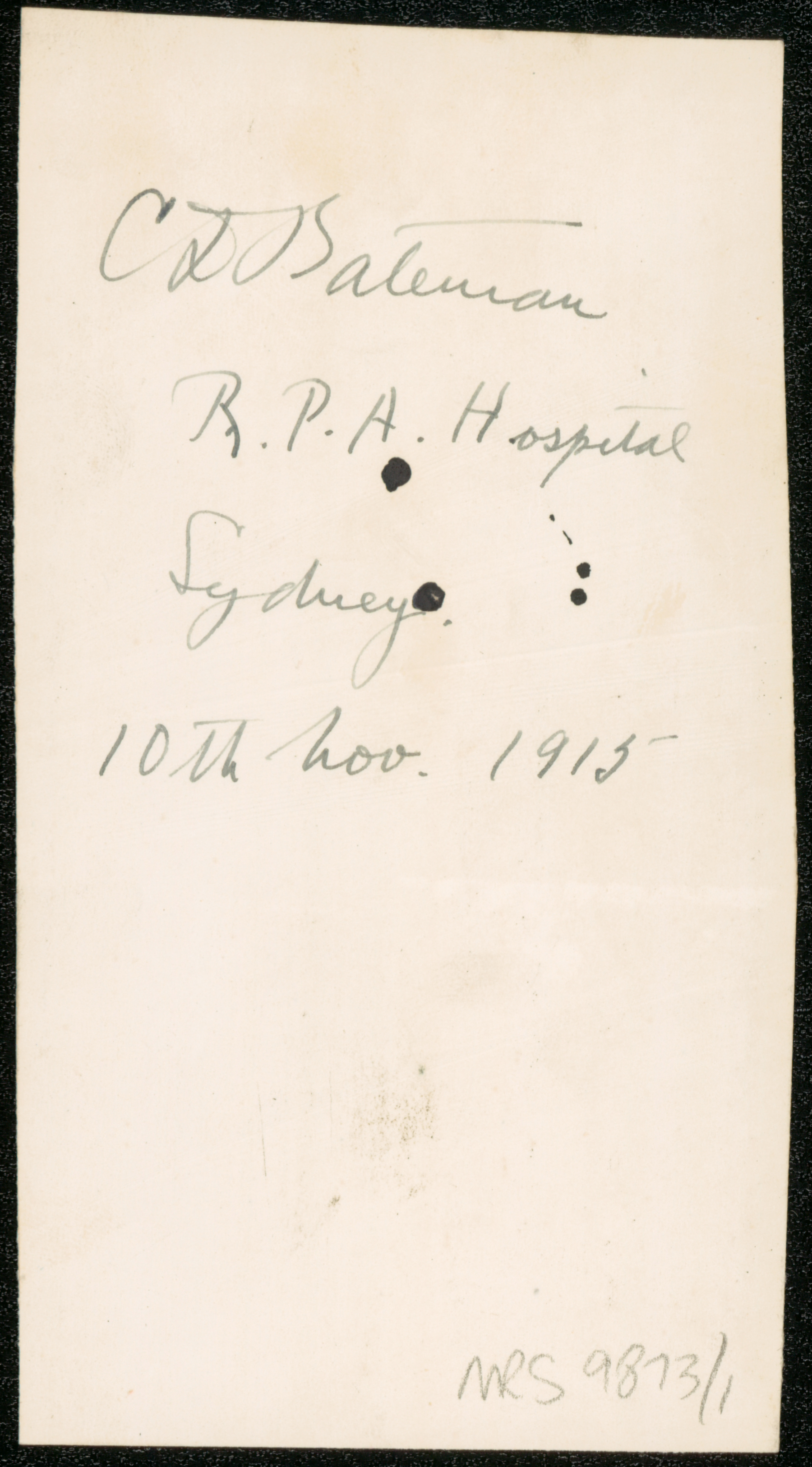 Reverse of portrait of Dr Charles Daubney Bateman [ jpg ]